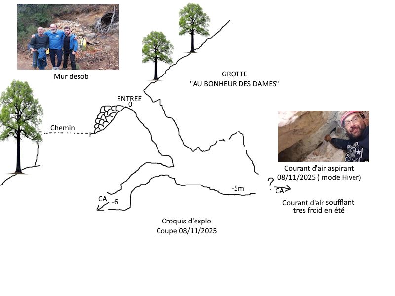 Rendez-vous habituel à 7h00 du matin, un samedi, au Bar du Sénat pour le café avant de partir en direction du vieux chemin Napoléon, entre la chapelle Saint-Jean de Saint-Vallier et Escragnolles. Le trou se trouve en bord de chemin, juste avant la « frontière » avec la commune d’Escragnolles.