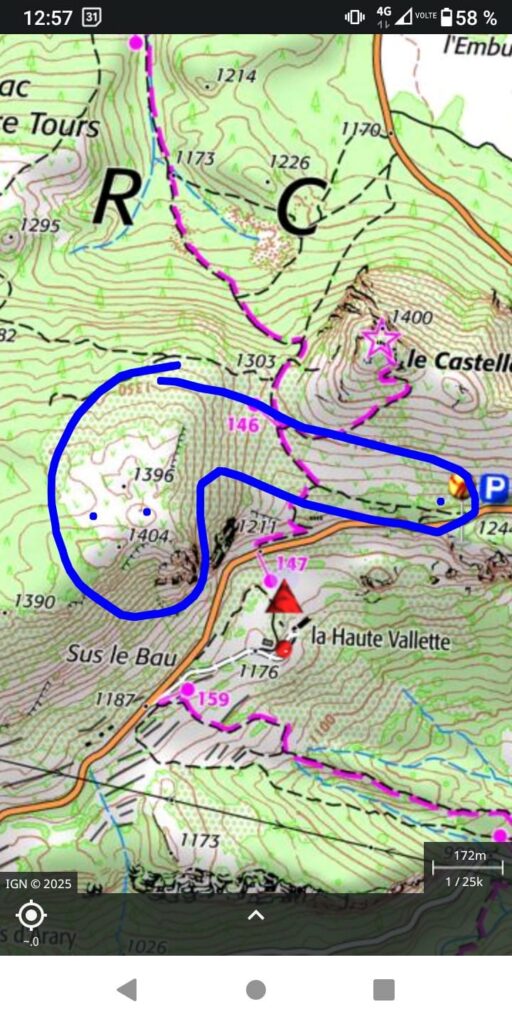On se retrouve donc à 10h avec café ☕et chocolat 🍫 apporté par Christian. On fait un rapide tour d’horizon des secteurs à prospecter et nous jetons notre dévolu(y) sur un secteur à l’EST du chateau, où Pierre nous a envoyé deux dolines à prospecter 🔎