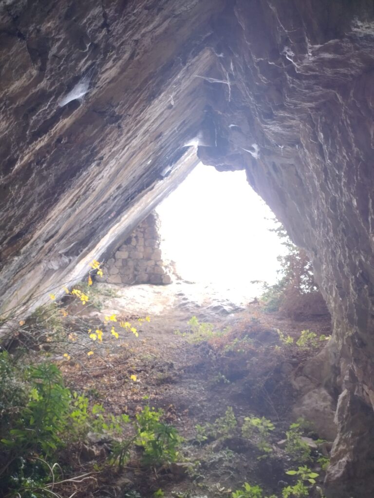En redescendant on en profite pour aller voir un trou tout rond en falaise en bord de route à 3m du sol. Ancien conduit phréatique de 3m de long, sans courant d’air.