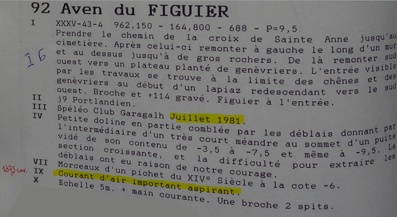 1984 , pour remettre dans le contexte c’est l’époque ou l’aven de la chauve souris passe de -97 a -108m et deviens le trou le plus profond de la commune de Saint Vallier de Thiey en dépassant l’aven des audides. on est aujourd’hui en 2026 a – 350m environ a l’aven ABEL …